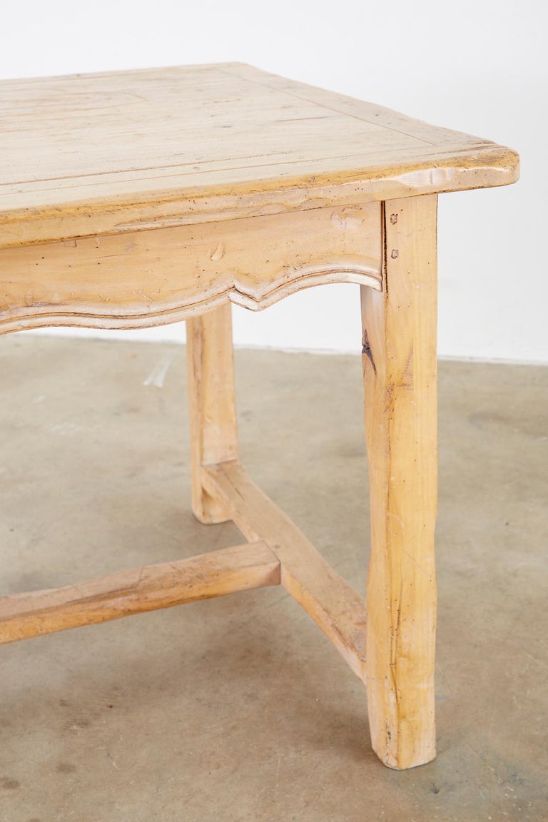 It's where your children sit and do their homework after school. Stretcher base french farmhouse table fabulous french cherrywood farmhouse dining table with a stretcher base and would easily sit 10 people comfortably in fantastic condition. 30cm from the leg to the end of the table. Our collection of white dining tables and black dining tables make for an artful arrangement. Please note that while the table is sealed we recommend using coasters/placemats as liquid left on the table top will stain.