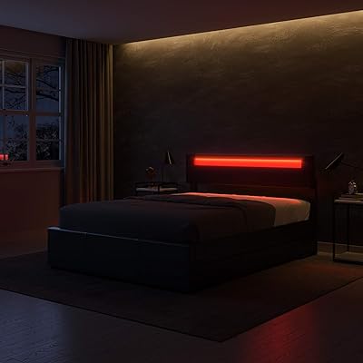 Jovenko Upholstered Led Storage Platform Bed Queen / How To Build A Platform Bed With Lift Up Storage : Bed with color led lights.